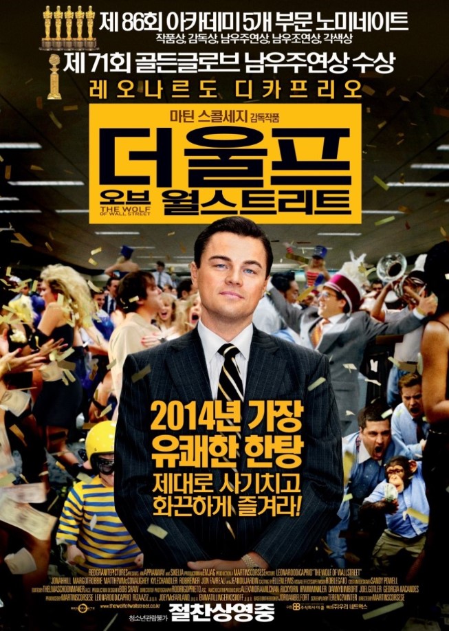 마틴 스콜세지 감독의 2014년 영화로 조던 벨포트의 자서전을 바탕으로 하고 있습니다. 레오나르도 디카프리오가 주인공 조던 벨포트 역을 맡았으며 그의 화려한 삶과 금융 범죄, 그리고 결국에는 FBI 수사에 얽히게 되는 과정을 그린 영화입니다.