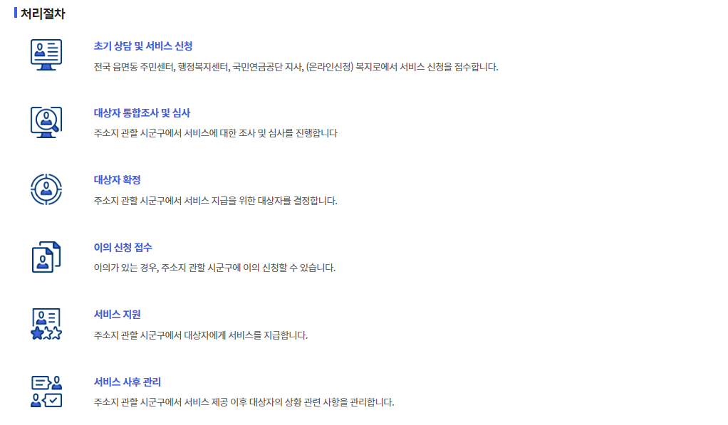 - 복지로(www.bokjiro.go.kr) 서비스신청을 통한 온라인신청