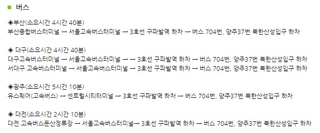 이용 북한산은 단풍철이 되면 차량이 혼잡해 주차에 어려움을 겪는 경우가 많습니다. 따라서 대중교통을 이용하면 시간을 절약할 수 있습니다. 북한산성 입구, 정릉, 우이 등 여러 지점에서 접근 가능한 대중교통 수단이 많으므로, 버스나 지하철을 이용해 접근하는 방법을 고려해보세요.