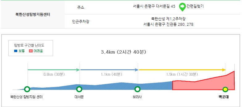 출발 지점 북한산성 탐방지원센터 또는 도선사 탐방지원센터