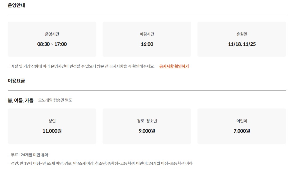 모노레일을 타고 이동하는 동안 중간중간 사진을 찍기 좋은 포토존이 많아 다양한 계절 풍경을 배경으로 인생 사진을 남길 수 있습니다.