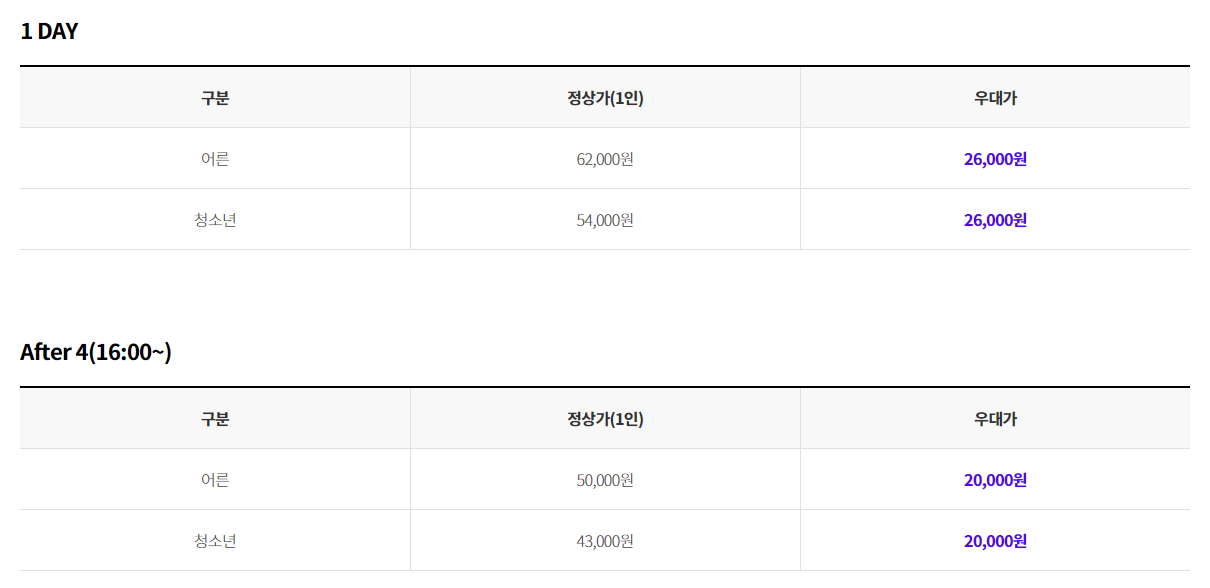 - 예매 방법 : 인터넷 예매 or 현장 예매